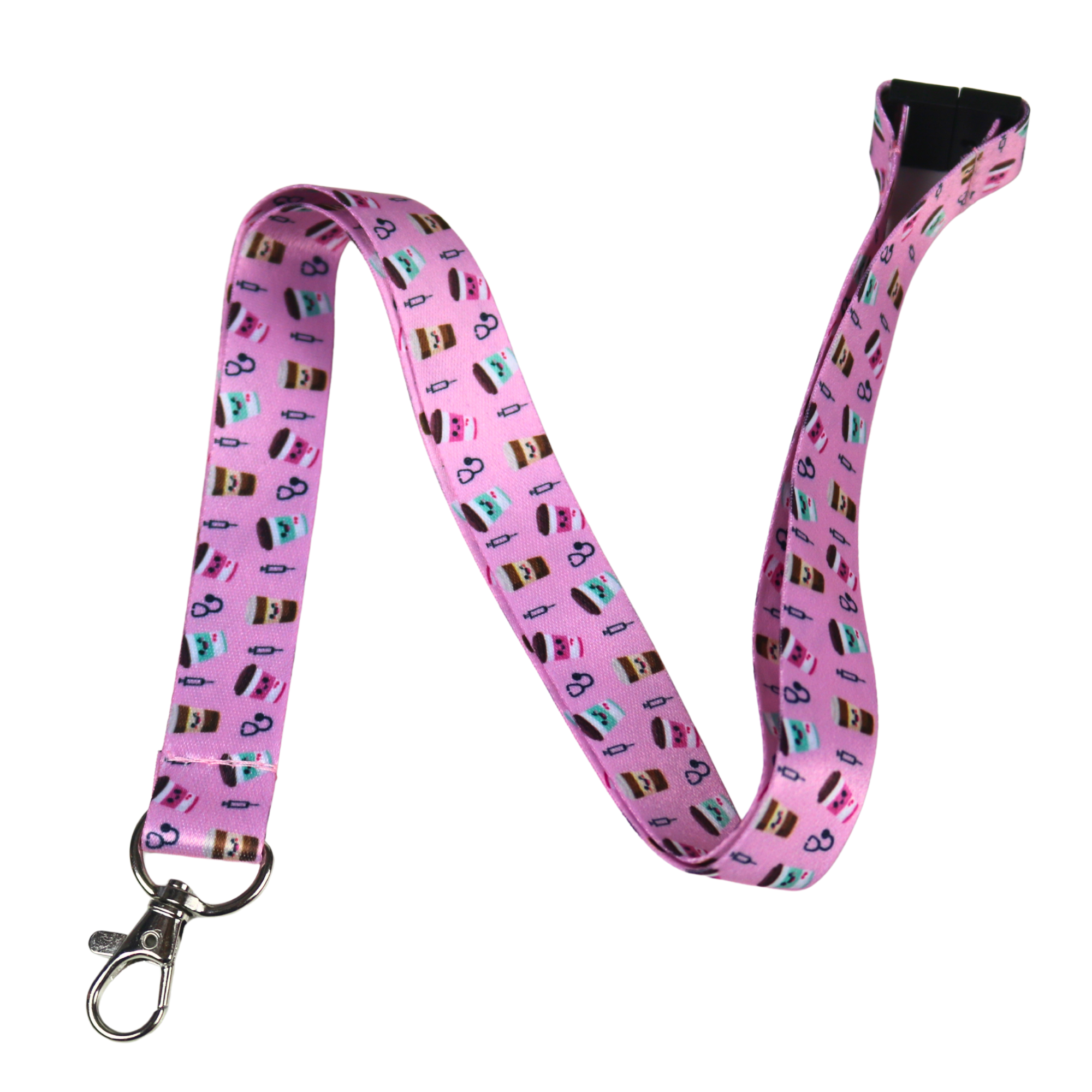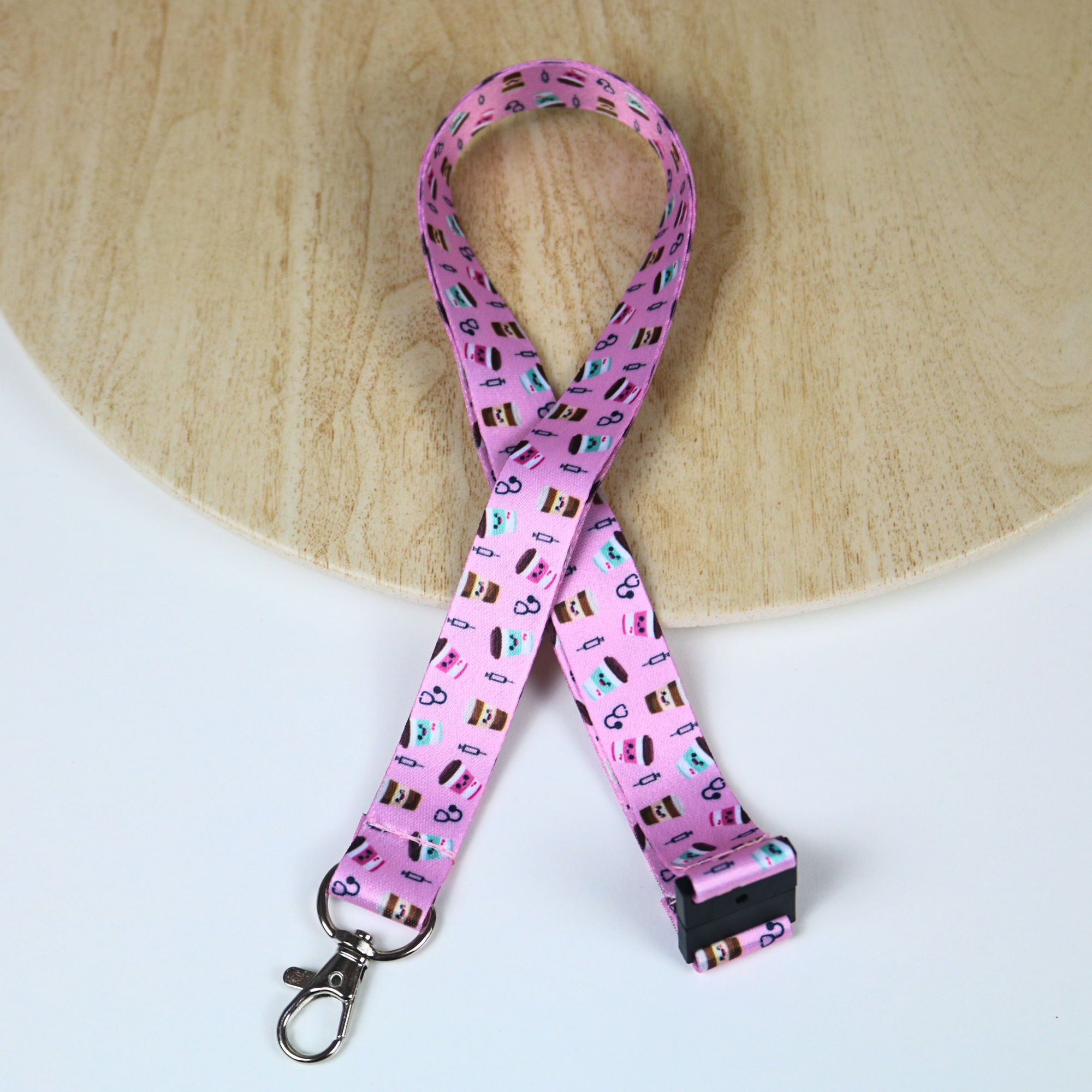 La lanière coffee please (rose pastel) offre une sécurité maximale avec sa clip de sécurité détachable. Conçue par des professionnels de la santé, cette lanière au design unique et tendance te permet d'y attacher ta carte d'identité ainsi que divers accessoires de travail.