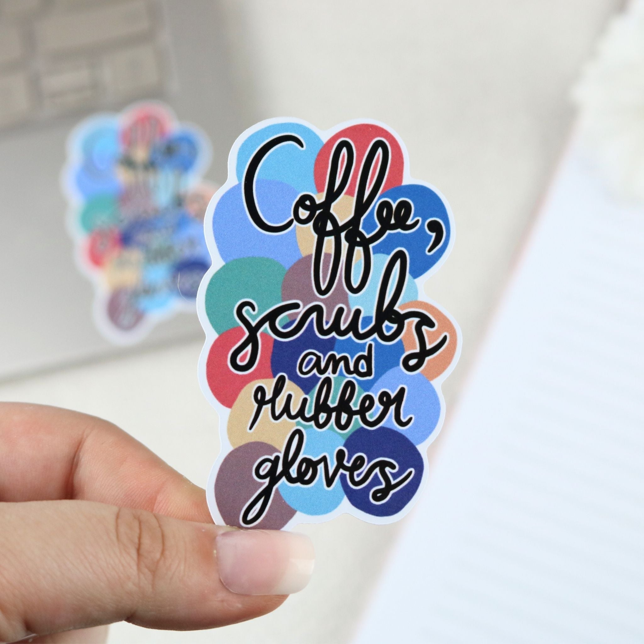 Coffee, scrubs and rubber gloves Sticker