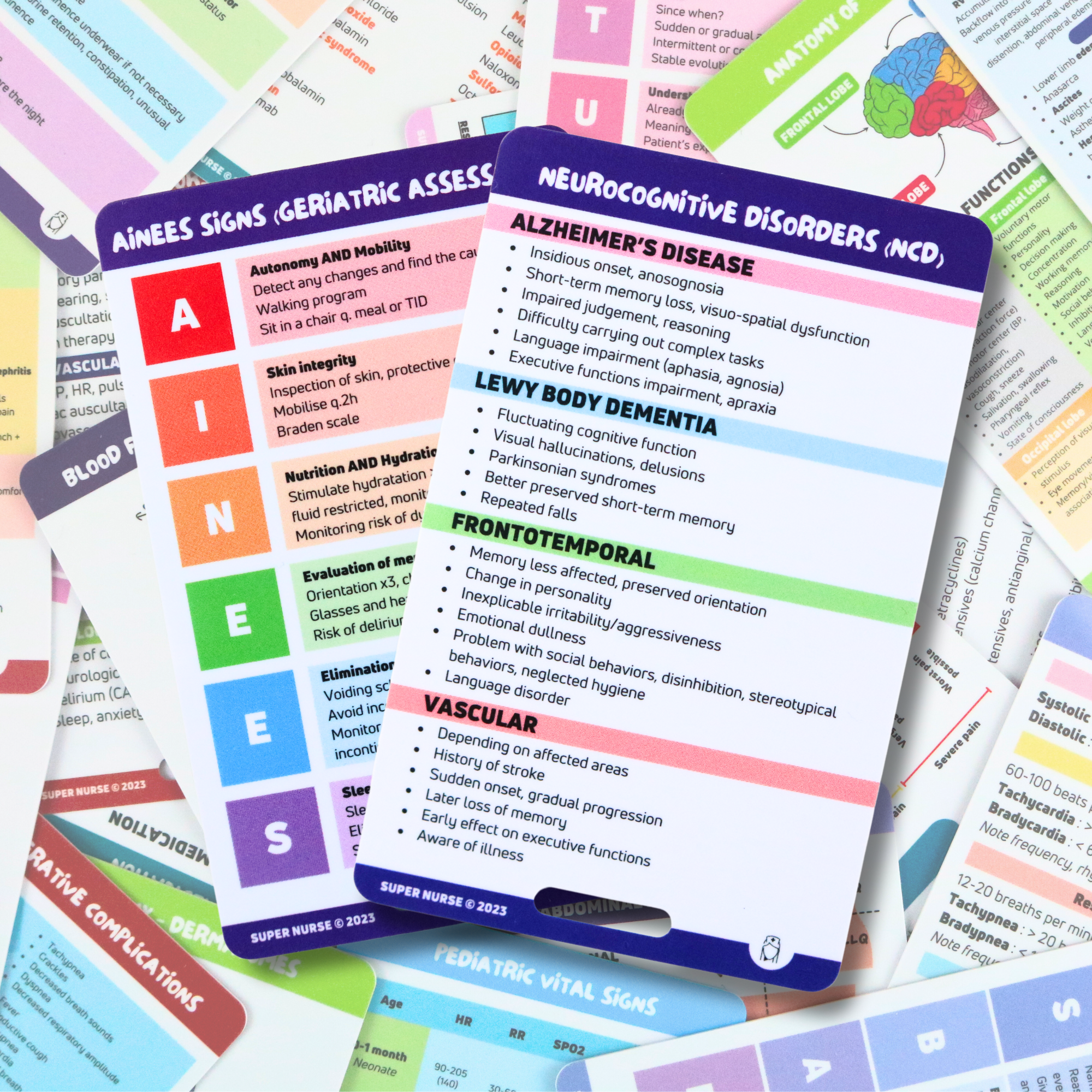 We designed them with a colorful and easily readable design in order to be not only useful, but also aesthetic and pleasant to look at. They will be an excellent help in preparing for the OIIQ or NCLEX professional exam, your nursing studies or your professional career. These reference sheets are also a great gift for nurses, EMTs, paramedics, doctors and other healthcare professionals.