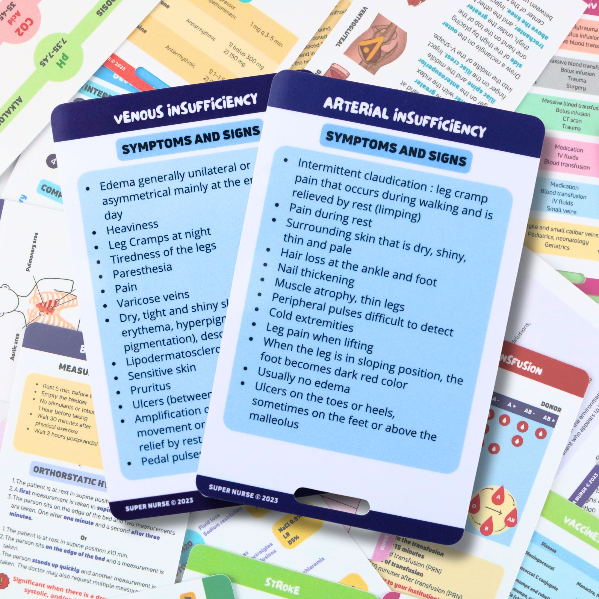 We designed them with a colorful and easily readable design in order to be not only useful, but also aesthetic and pleasant to look at. They will be an excellent help in preparing for the OIIQ or NCLEX professional exam, your nursing studies or your professional career. These reference sheets are also a great gift for nurses, EMTs, paramedics, doctors and other healthcare professionals.